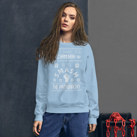 All I Want for Chanukah is to Smash the Patriarchy - Empowering Ugly Sweater Style Sweatshirt