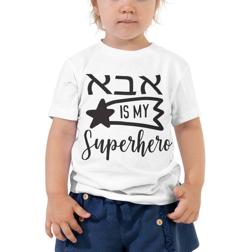Let Your Little Ones Celebrate Their Jewish Hero with Our 'Aba is My Superhero' Toddler Tee!