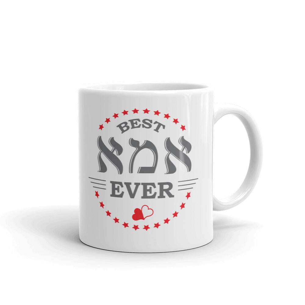 - Heartfelt Design: Emblazoned with the words “BEST אִמָא EVER” and complemented by a charming heart design, this mug is a sweet testament to the love for your mother.