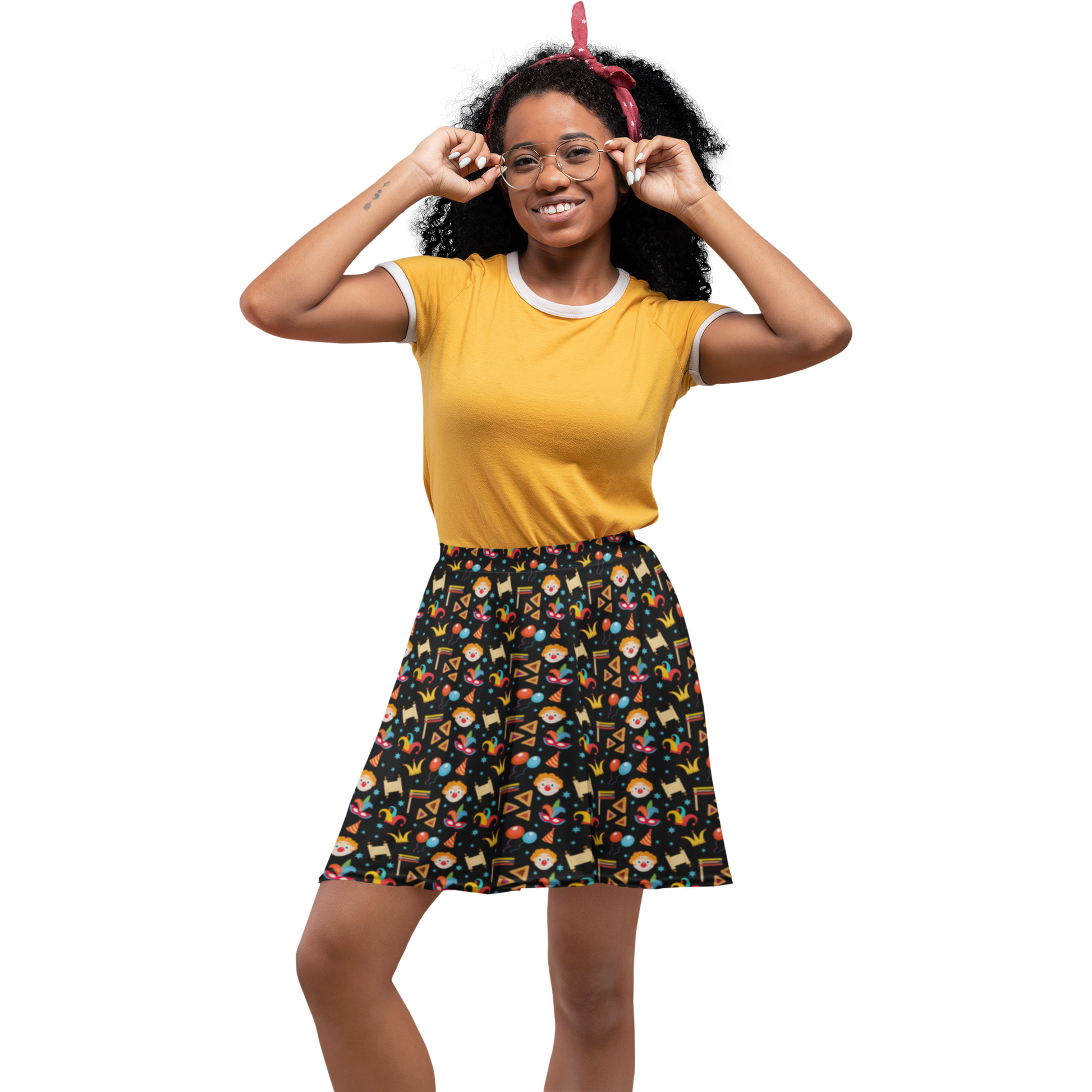 Purim Party Skater Skirt - Spin into the Festive Spirit!" Product Description: