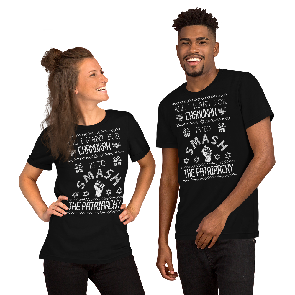 - Feminist Chanukah Design: Featuring a striking "Smash the Patriarchy" graphic, this tee is perfect for those who want to celebrate Hanukkah while advocating for social change and gender equality.