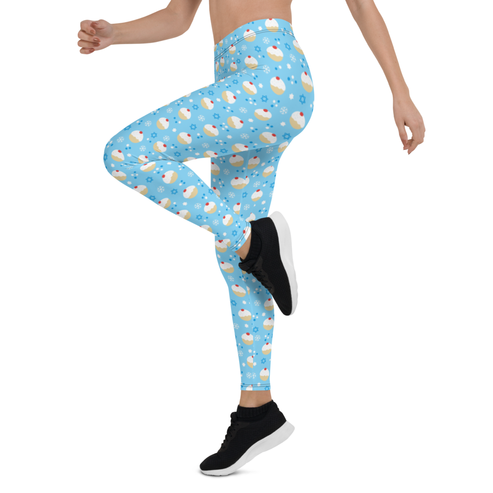 Indulge in the Delight of Hanukkah with Our Snowy Sufganiyot Leggings!