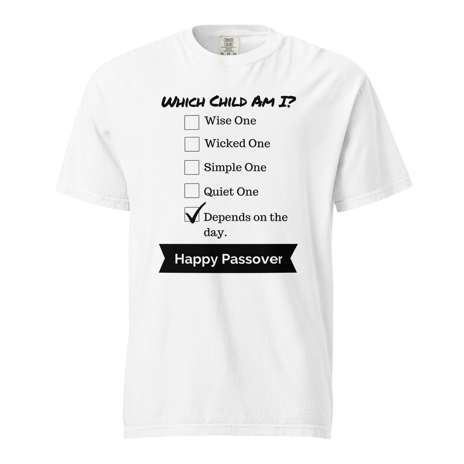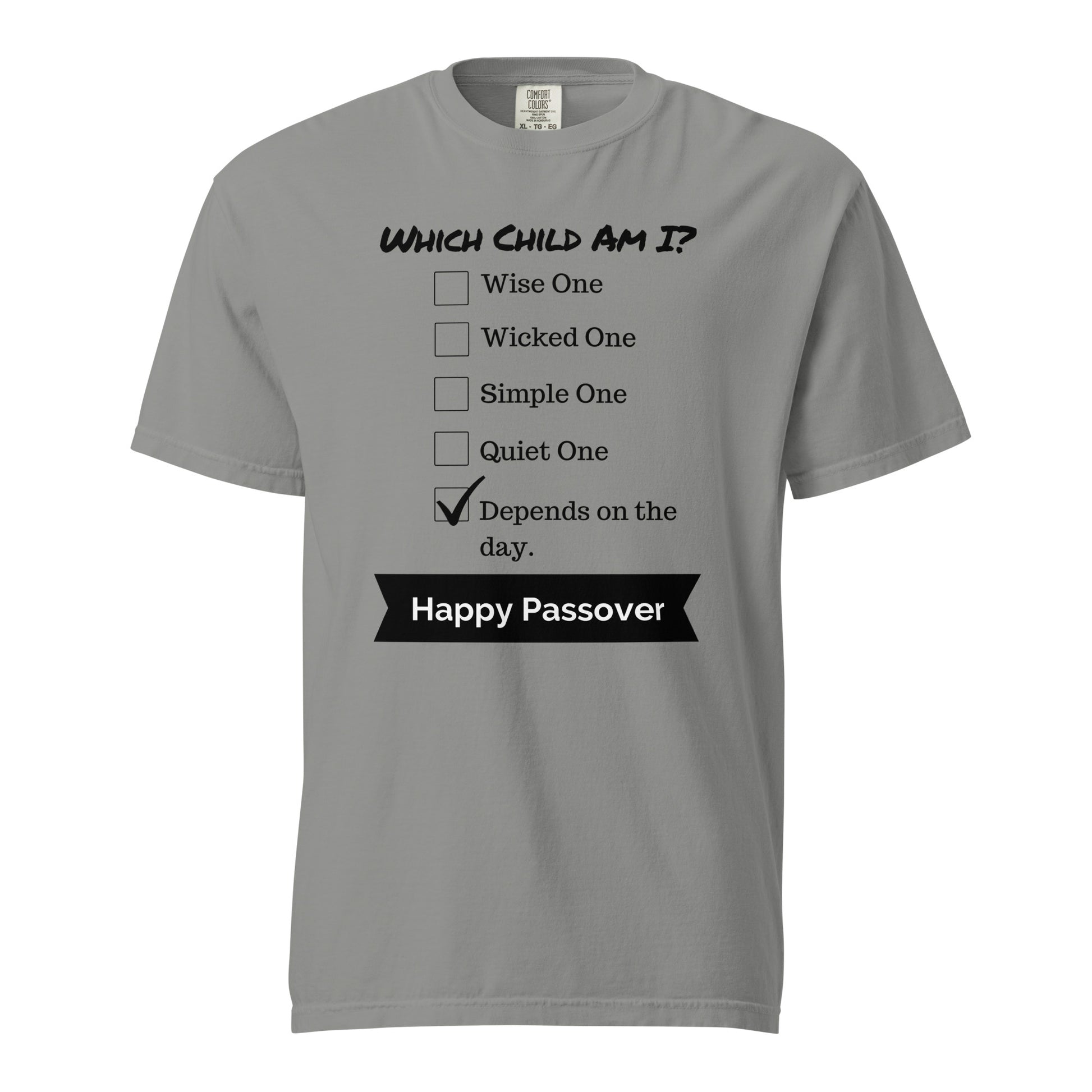 Are you the Wise One? The Wicked One? The Simple One? Or does it just depend on the day? π This funny Passover shirt puts a modern twist on the Four Children, making it the ultimate conversation starter at the Seder table. Perfect for anyone who loves a little Jewish humor, this comfy tee is a must-have for celebrating Passover in style.